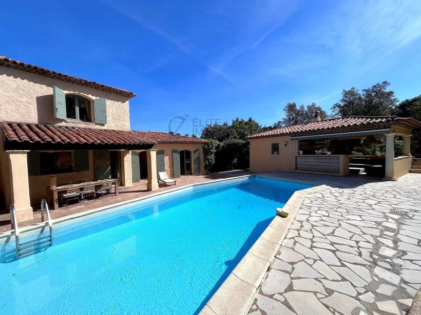 A beautiful Provençal villa located in Gigaro, just a 10-minute walk from the beach, set on a fenced, wooded lot of 1,593 m² with a heated pool